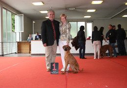 Der Richterbericht sagt: "wunderschöne Hündin, sehr rassetypisch, vorzügliches Profil, vorzügliche Topline, gut aufgebauter Körper, schönes Pigment" und besonders stolz bin ich auf das "special movement"!