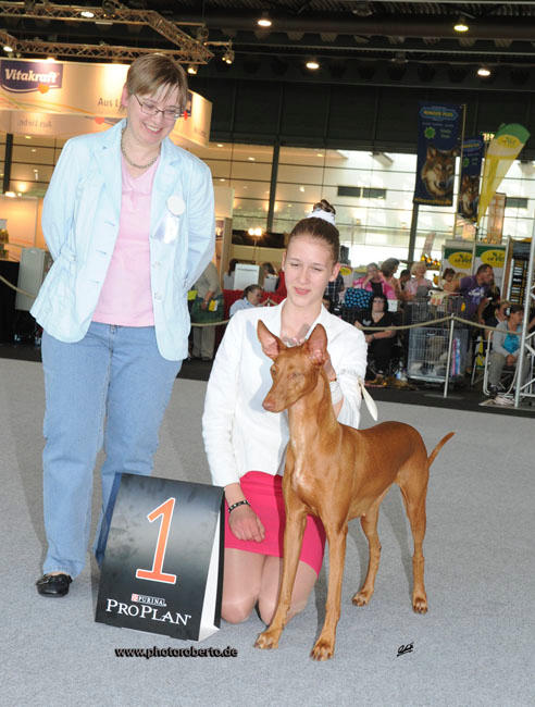 Dann ging Johanna mit Merly in den Vorentscheidungsring für das Juniorhandling und hinterließ bei der Richterin scheinbar einen sehr positiven Eindruck. Später im Ehrenring konnte Johanna ihre Atersklasse aus 9 Startern für sich entscheiden, der Tagessieg ging nach Dänemark.
