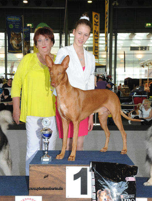 Wieder waren zuerst die Pharaohs an der Reihe, diesmal gerichtet von Herrn Langer aus Deutschland. Da wir immer noch am Gewinn des "grau Superhundes 2015" arbeiten, startete nur Turner. Herr Langer war wie schon auf dem Ausstellungen zuvor, absolut begeistert von der Qualität des Hundes und gab ihm nur zu gern das "Best of Breed".